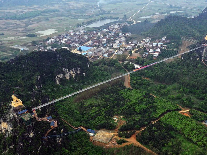 Hoặc Quý khách có thể trải nghiệm: Cầu Kính dài nhất Châu Á với chiều dài hơn 1000m, Đến đây Qúy khách sẽ được thử lòng dũng cảm của mình và có thể chiêm ngưỡng phong cảnh nên thơ thủy mặc của núi non tại Công Viên. Ngoài ra Qúy khách có thể tham quan chiêm ngưỡng các quần thể kiến trúc độc đáo của các dân tộc Quảng Tây…. (Chưa bao gồm phí thăm quan Cầu Kính)