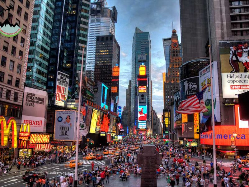 • Quảng trường thời đại (Time Square) – Quảng trường trung tâm thành phố New York rực rỡ với những ánh đèn màu và bảng quảng cáo. Đây là nơi thị trưởng thành phố phát biểu trước công chúng và tổ chức những sự kiện lớn của New York.